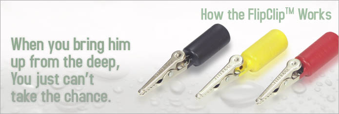 The clip of the FlipClip™ is a very important element of the product. The nickel-plated clip provides the perfect amount of tension to firmly grasp the fin of your fish. The nickel-plating also prevents the clip from rusting.